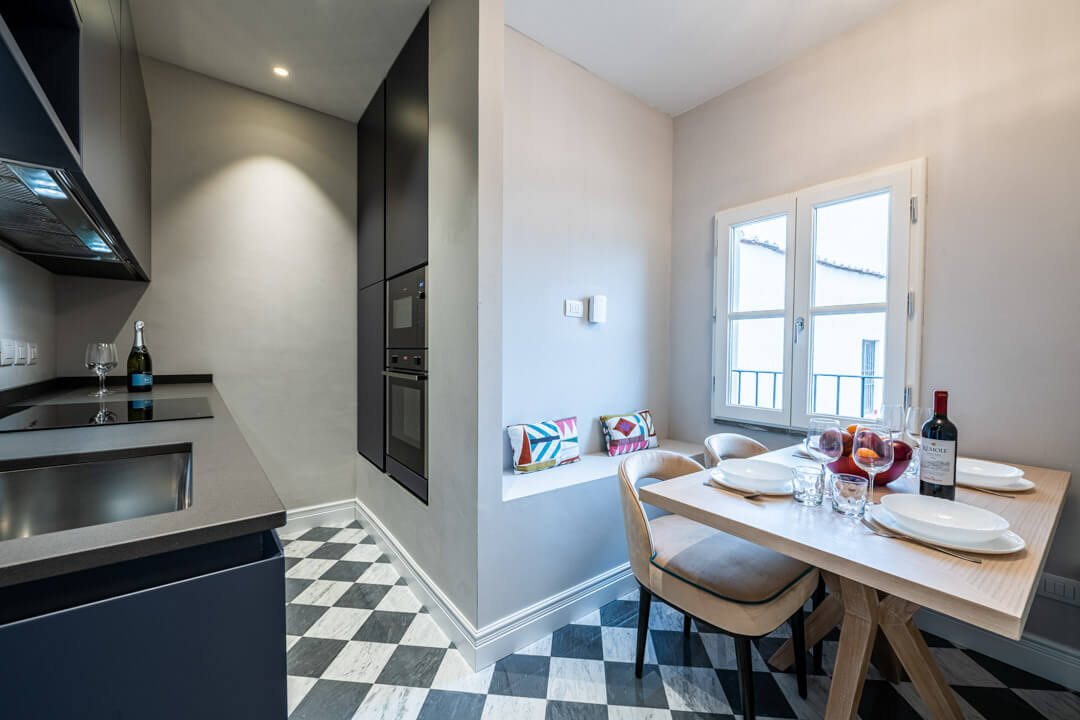 L’ascensore privato ti accompagna in questa dimensione esclusiva, dove il tempo si dilata e Firenze si svela dall’alto, discreta e magnifica.